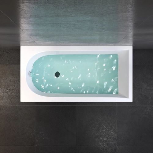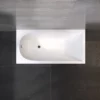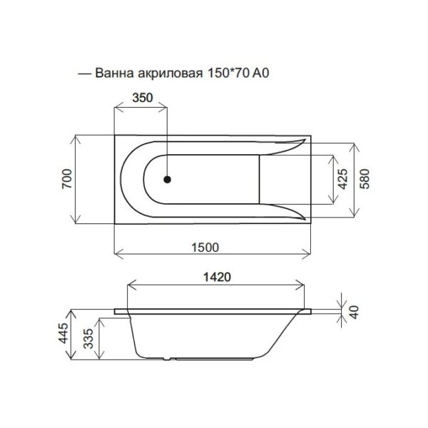 Ванна белого цвета имеет прямоугольную форму и глянцевую поверхность. Её размеры: длина 1500 мм, ширина 700 мм, высота 445 мм. Объем составляет 150 литров, толщина акрила — 6 мм. Слив-перелив присутствует, ручки в комплекте отсутствуют. Гарантия на изделие — 2 года.