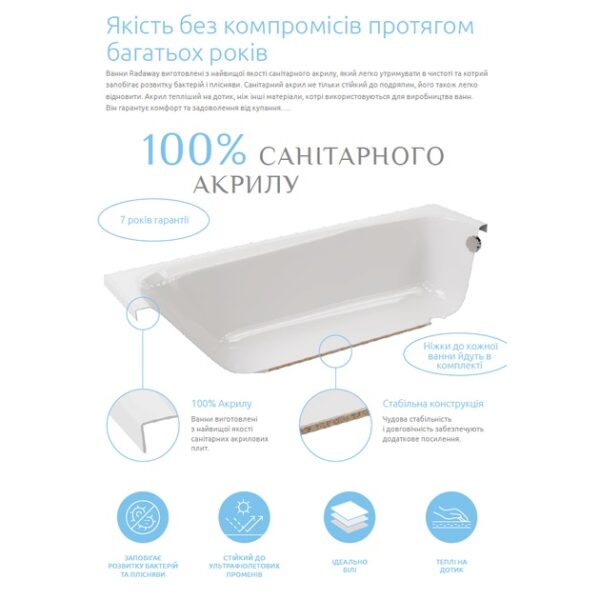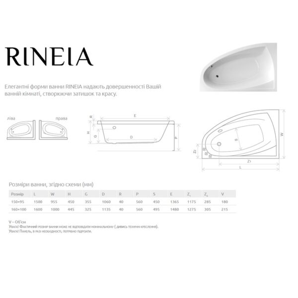 Ванна акриловая Radaway Rineia 160×100 правая + ножки + сифон R135L WA1-31-160x100PS