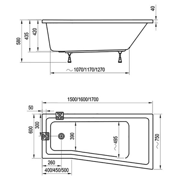 Обратите внимание, ножки, панели, ручки и сифоны не входят в комплектацию ванн
