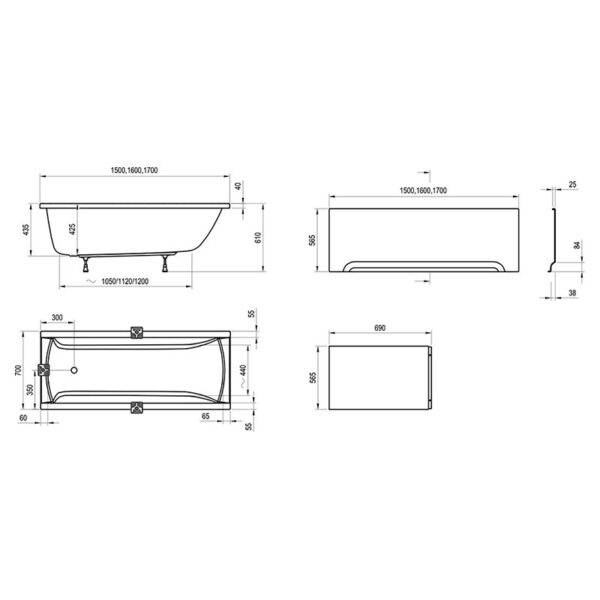 Обратите внимание, ножки, панели, ручки и сифоны не входят в комплектацию ванн