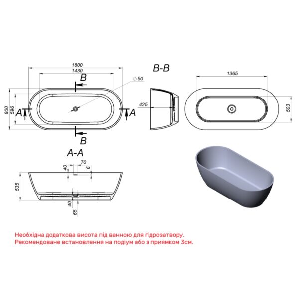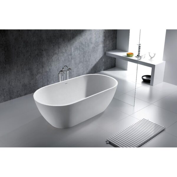 Слив воды расположен по центру, что придает дополнительную гармонию. Установка отдельностоящая, что позволяет создать уникальный стиль в ванной. Ванна относится к категории изделий из искусственного камня и имеет гарантию 10 лет.