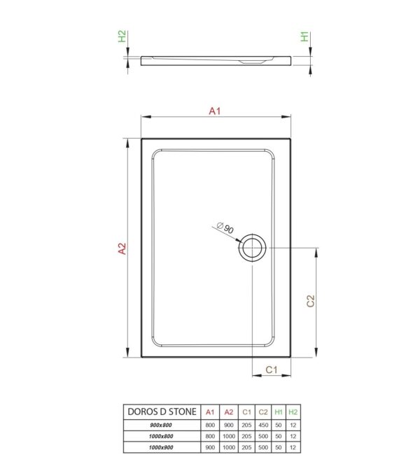 Душевой поддон Radaway Doros D 1000x900x50, акрил, белый «под камень» SDRD1090-01-04S