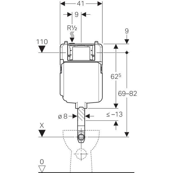 - Смывной бачок скрытого монтажа с фронтальной установкой