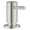 Дозатор Grohe EX Cosmopolitan 40535DC0 делает процесс мытья рук гигиеничным и быстрым. Пластиковая емкость с жидким мылом устанавливается под столешницу в отверстие, а управляющий элемент — на столешницу. Таким образом емкость скрыта из виду, фиксирована и не занимает много места на столе, в отличии от бутылей со средствами мытья из масс-маркета. Дизайн дозатора подходит по дизайну к другим аксессуарам. Объем бутылочки — 0,5 л.