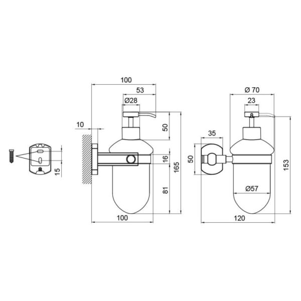 Дозатор для жидкого мыла Qtap Liberty BLM 1152 обеспечивает гигиеничность и скорость при мытье рук. Его латунный держатель в виде кронштейна с кольцом обладает антикоррозийными свойствами и легко крепится на стену. Бутылочка из матового стекла придает элегантный вид. Дизайн дозатора сочетается с другими аксессуарами такого же цвета, идеально вписываясь в небольшие санузлы. Благодаря компактным размерам он легко устанавливается в удобном доступном месте, не занимая много места на раковине.