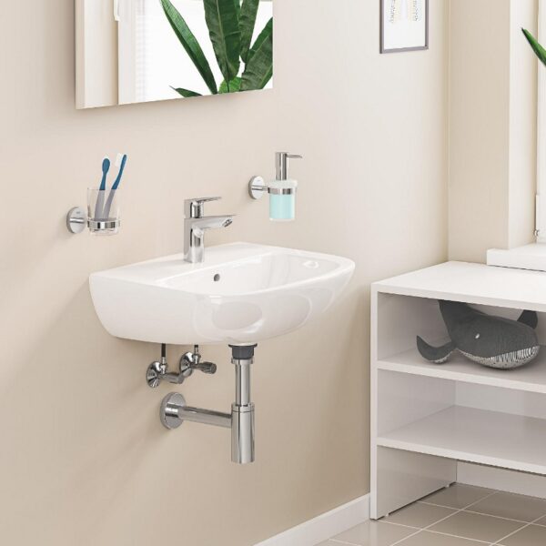 Установка дозатора для мыла GROHE Start с держателем невероятно проста. В комплект входят все необходимые компоненты, включая шурупы и дюбели для крепления к стене. Кроме того, вы можете воспользоваться GROHE QuickGlue для удобной установки без сверления отверстий.