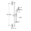 Душевой набор состоит из трех основных компонентов: ручного душа Vitalio Comfort 110, душевой штанги Vitalio Universal длиной 600 мм и душевого шланга VitalioFlex Trend размером 1750 мм с разъемами 1/2″. Этот набор оснащен несколькими инновационными технологиями от GROHE: