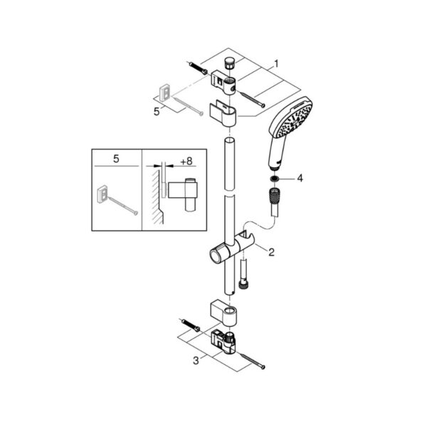 Установка максимально проста благодаря системе GROHE FastFixation с регулируемым верхним креплением, а регулируемый держатель позволяет удобно настроить высоту и угол наклона душа.