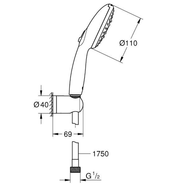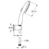 Этот комплект душа включает в себя ручной душ Vitalio Start 110, настенный держатель ручного душа Vitalio Universal (не регулируемый) и душевой шланг VitalioFlex Trend длиной 1750 мм с разъемами 1/2″ x 1/2″.