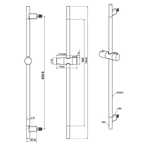 - Высота душевой стойки: 740 мм