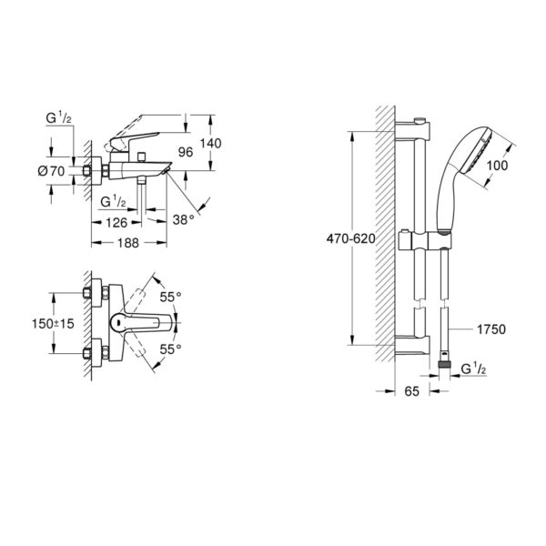 - GROHE FastFixation (регулируемое расстояние между настенными креплениями для использования с уже существующими отверстиями в стене)