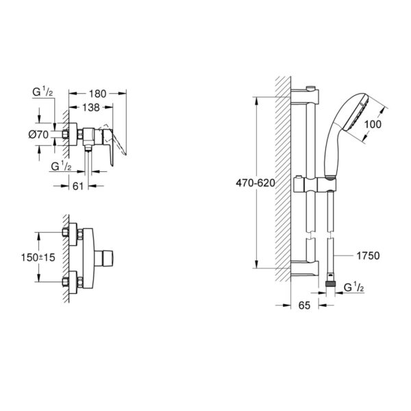 - GROHE FastFixation (регулируемое расстояние между настенными креплениями для использования с уже существующими отверстиями в стене)