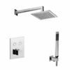 Верхний душ с крупным квадратным диском (200 × 200 мм) обеспечивает комфортный и равномерный поток воды;