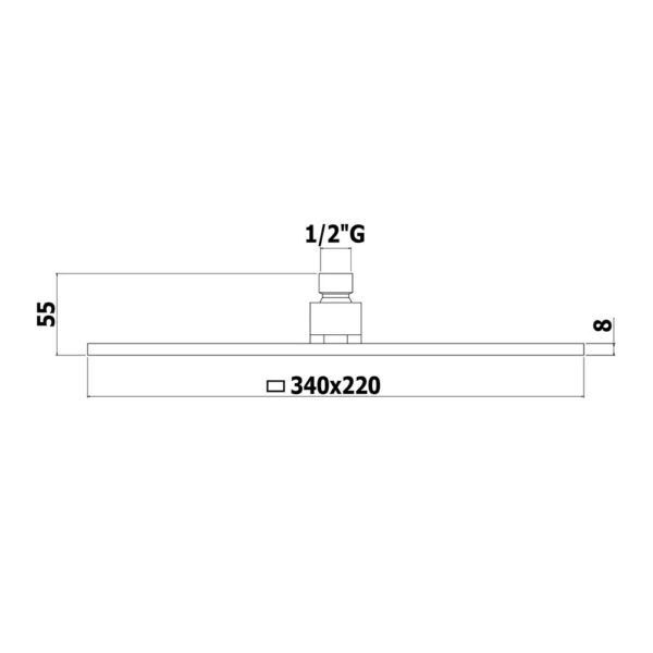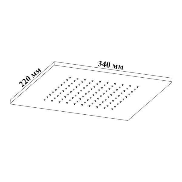 Верхний душ крупного размера (340 × 220 мм) для равномерного и мягкого потока воды.