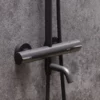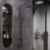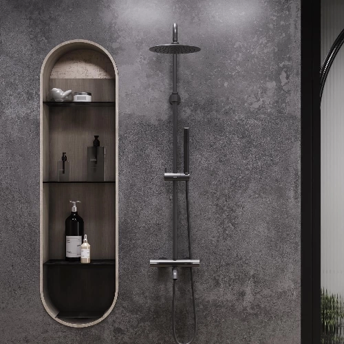 Душевые системы из коллекции Scandinavian Pure сочетают минималистичный датский дизайн и надежное скандинавское качество. Элегантные обтекаемые формы и ювелирный блеск станут украшением любой современной ванной комнаты. Термостатический картридж диаметром 35 мм обеспечивает точную настройку температуры и напора воды, легко регулируемую правой ручкой смесителя. Увеличенный диаметр верхнего душа с возможностью регулировки угла наклона и ручная лейка в форме стика обеспечивают разнообразные ощущения — от бодрящего утра до расслабляющего вечера. Левой ручкой смесителя можно плавно переключать потоки воды между ручной и тропической лейками. Инновационное покрытие High Gloss защищает хромовую поверхность душевой системы от мелких повреждений, сохраняя её блеск на долгие годы. Характеристики:- Цвет: черный