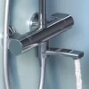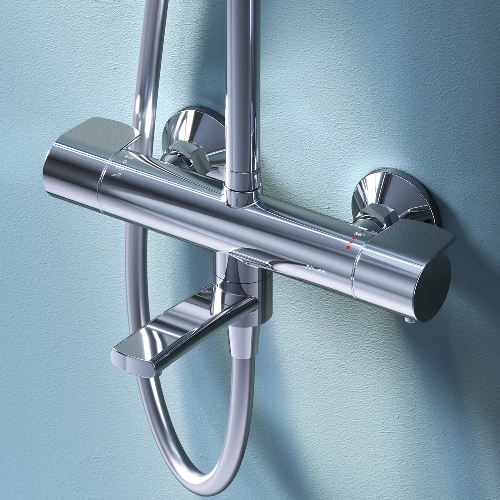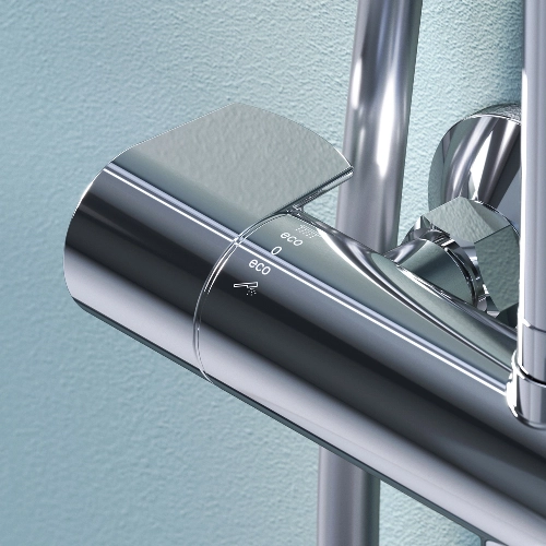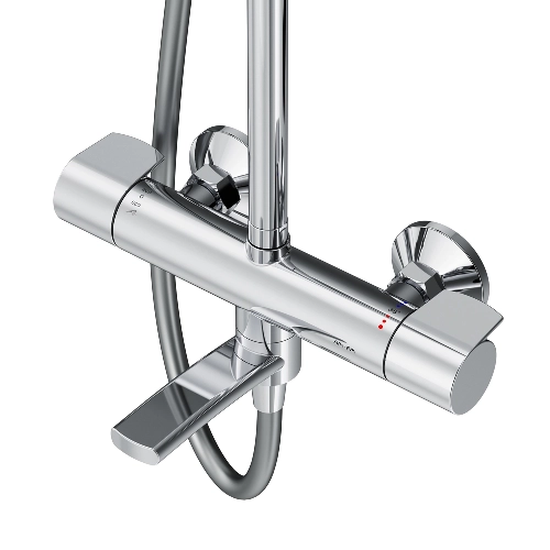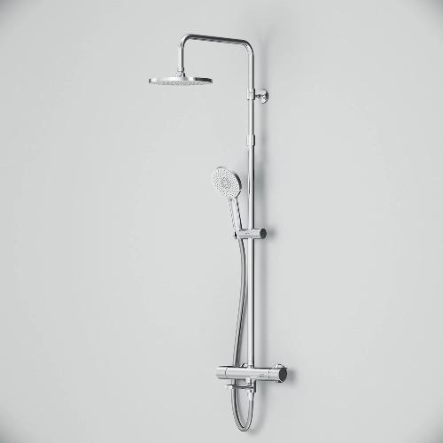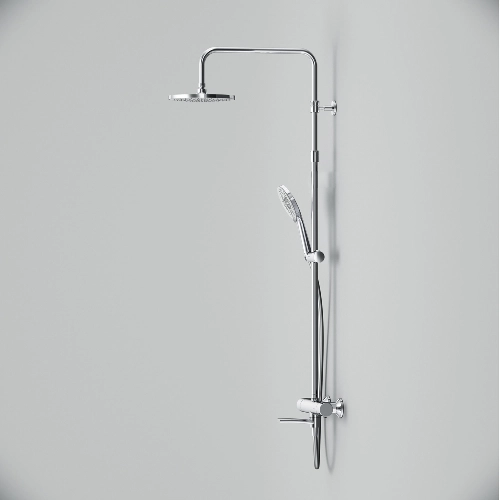 Эта система включает в себя смеситель, выполненный в виде полочки, который оснащен дополнительной нишей — идеальным решением для современной ванной комнаты, где все необходимые предметы всегда под рукой. Телескопическая штанга с регулировкой на 400 мм обеспечивает удобство для пользователей разного роста, а увеличенные размеры тропического (220 мм) и ручного (120 мм) душей позволяют почувствовать все преимущества дизайнерского подхода.