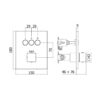 Верхний душ размером 200 × 200 мм крепится к стене с помощью держателя, а ручная лейка подключается к термостату через гибкий шланг, обеспечивая удобство в использовании.