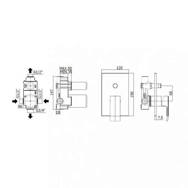 • Смеситель с термостатом, включая встраиваемый корпус
