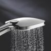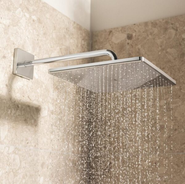 Набор дополняет верхний душ Vitalio Rain Mono 310 Cube с расходом воды 9,5 литра в минуту, включая горизонтальный держатель душа длиной 422 мм. В комплект также входит ручной душ Vitalio SmartActive 130 Cube с тремя режимами и расходом 9,5 литра в минуту (26 595). Завершающим элементом набора является душевой шланг VitalioFlex Silver длиной 1500 мм (27 505 000).