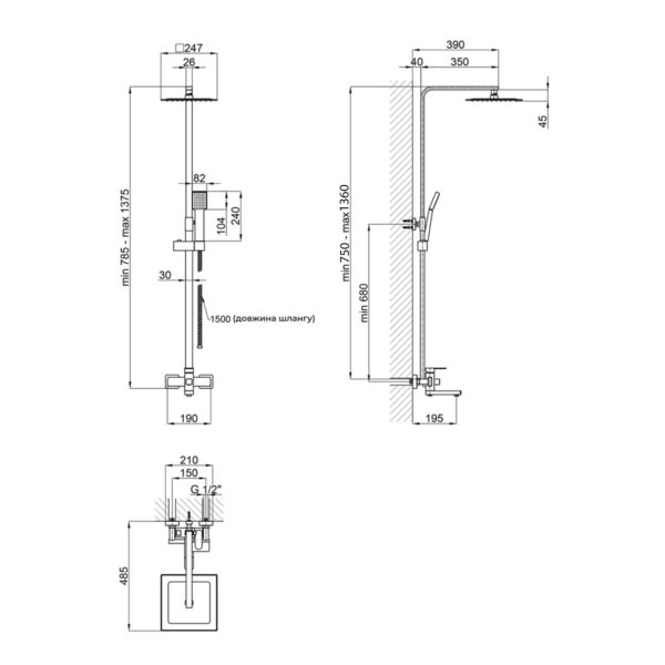 Высота душевой стойки, мм | 1400 |