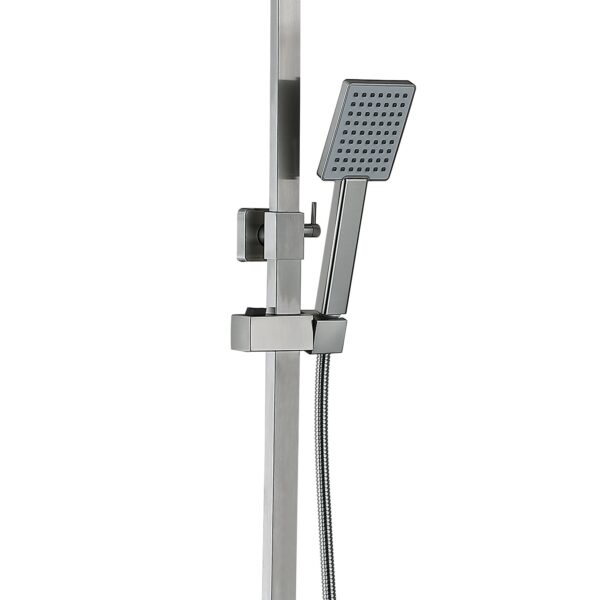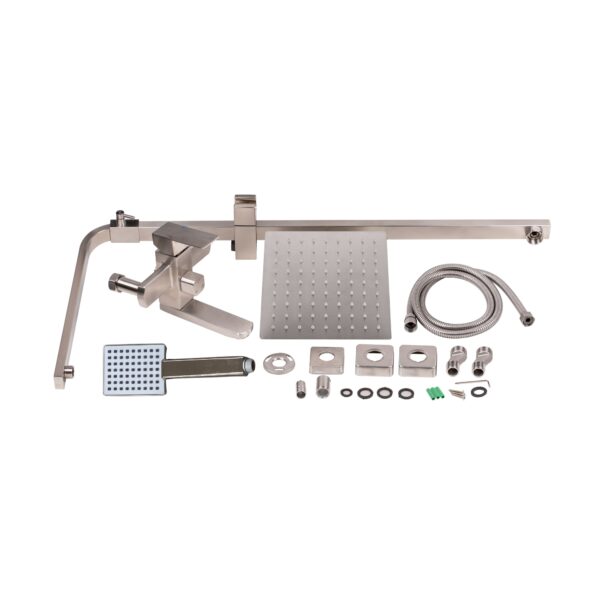 Комплектация | Смеситель, кронштейн для верхнего душа, лейка для верхнего душа, кронштейн для ручного душа, лейка для ручного душа, душевой шланг, душевая стойка, крепежи. |
