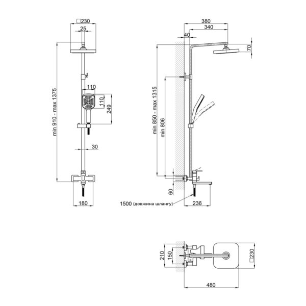 Высота душевой стойки, мм