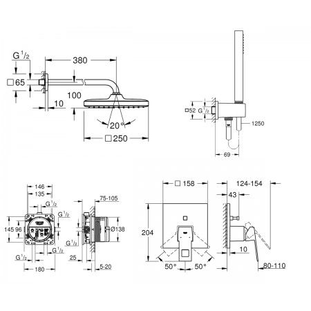 - Верхнюю монтажную часть необходимо дополнительно укомплектовать скрытой частью GROHE Rapido SmartBox 35600000
