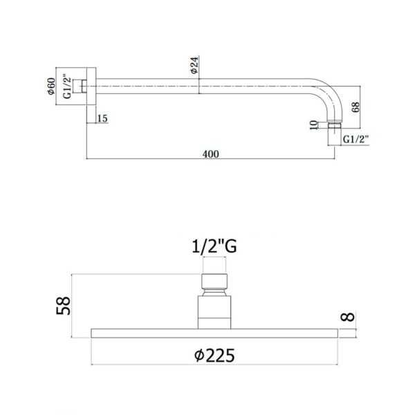 • Верхний душ Ø225 мм — равномерное, мягкое распределение потока для максимального комфорта