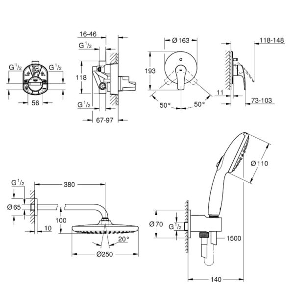 Набор для комплектации душа Grohe Eurosmart с Tempesta 250 (UA26415SC8).