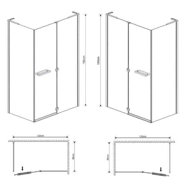 Код товара: 75357Душевая кабина EGER Megerka 120*80*190см (стекла + двери), распашная, правая, стекло тонированное 6мм 599-330/1R