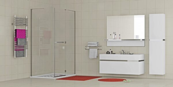 Кабины и шторки EGer изготавливаются исключительно из закалённого стекла толщиной от 4 до 8 мм и комплектуются алюминиевым профилем. Магнитные уплотнители гарантируют герметичность закрытия дверей, а двойные ролики обеспечивают мягкий ход.