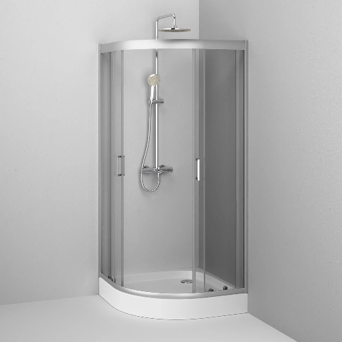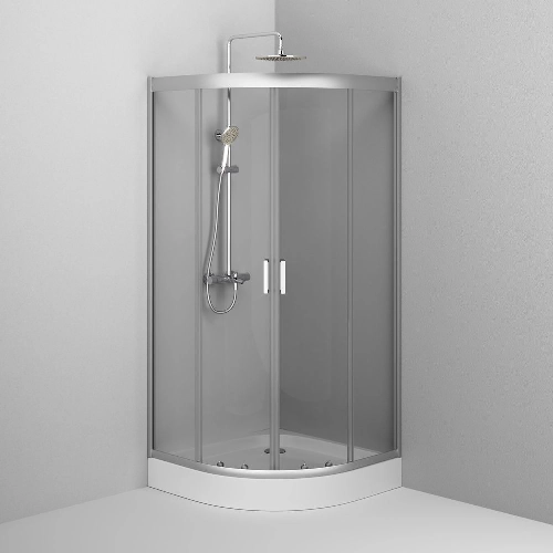 Профиль высотой 1900 мм рассчитан на людей любого роста, а расширенный вход гарантирует удобство использования. Конструкция оснащена двойными стальными роликами на металлоподшипниках — для бесшумной, плавной и долговечной работы двери. Профиль выполнен в глянцевом хроме, а тонированное графитовое стекло добавляет элегантности и визуальной глубины.