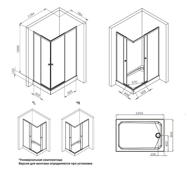 Монтаж: без поддона