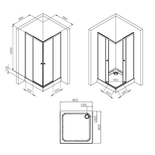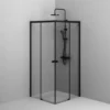 Ограждение изготовлено из закалённого стекла: 6 мм — для дверей и 4 мм — для стенок, что обеспечивает безопасность и устойчивость к механическим воздействиям. Алюминиевый профиль покрыт стойкой порошковой краской, нанесённой при высокой температуре — это гарантирует долговечность и устойчивость к повреждениям.