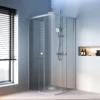 Раздвижной механизм оснащён роликами увеличенного диаметра, что обеспечивает плавный и бесшумный ход двери. Закаленное стекло толщиной 6 мм для дверей и 4 мм для стенок гарантирует безопасность, прочность и визуальную чистоту.