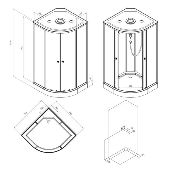 Размеры (ДхШхВ): 995 × 995 × 2100 мм