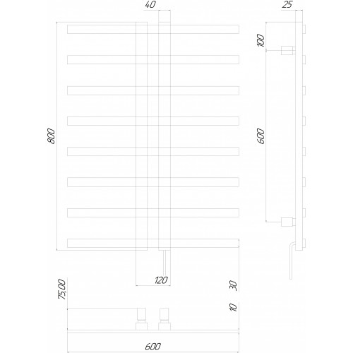 Полотенцесушитель KOSSER Флай 800х600/8 E (ДФ01E)