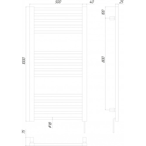 | Особенности | Диаметр стойки — Ø40х25, толщина стойки — 1.2 мм, диаметр перемычки — Ø20, толщина перемычки — 1.2 мм. Максимальная рабочая температура 50-60 °C. Потребляемая мощность 140 Вт. |