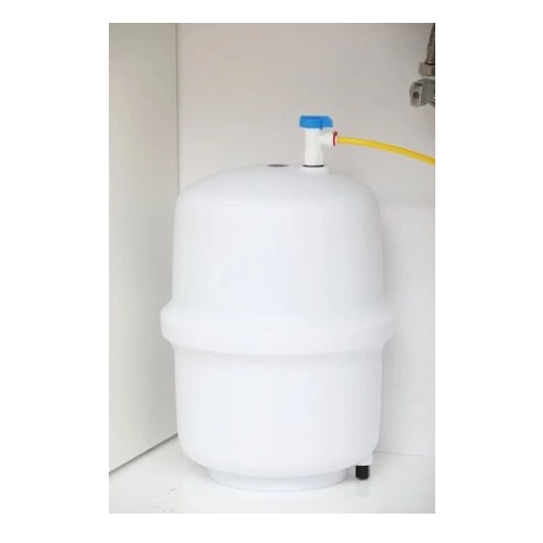 Бак, инструкция по эксплуатации, ключ для колб, ключ для мембраны, корпус фильтра с кронштейном для крепления на стену, кран для питьевой воды, кран на бак, тройник для подключения в водопровод, трубки для подключения, хомут для врезки в канализацию.