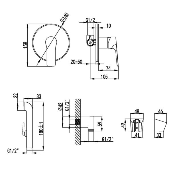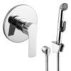 Душевой гарнитур для скрытого монтажа Kucera VR30105Z-BT от Imprese включает в себя комплект верхней монтажной части однорычажного смесителя для душа скрытого монтажа с встроенной частью, гигиенический душ диаметром 3,2 см с одним режимом струи, шланг с металлической оплеткой, настенный держатель и шланговое подсоединение для душевого шланга.