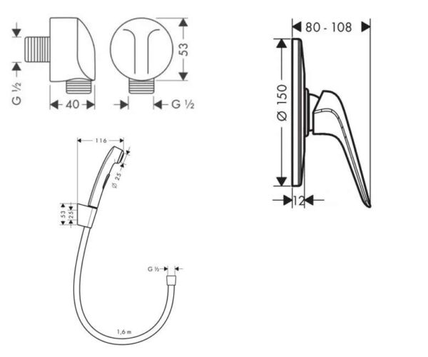 Гигиенический душ hansgrohe со шлангом 160 см и держателем 32128000