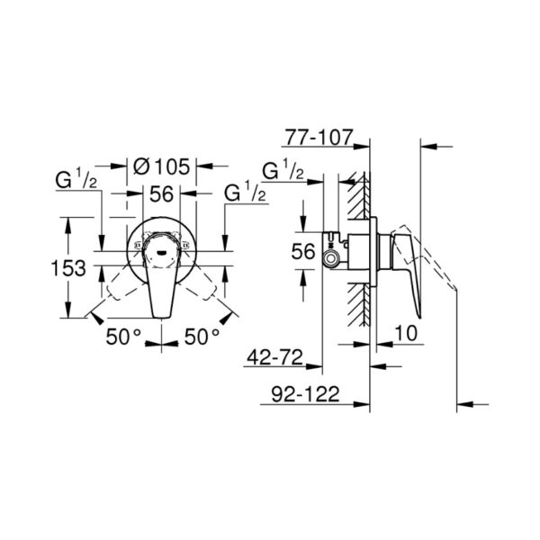 • Хромированная поверхность GROHE Long-Life Shine, сохраняющая блеск на протяжении многих лет