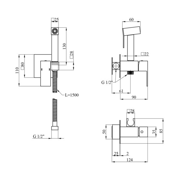 Гигиенический душ Kroner KRP Edelstahl Kubus-SCH053 отличный вариант для реализации функции биде даже в небольшом санузле. Корпус изготовлен из пищевой нержавеющей стали SUS 304, что обеспечивает долговечность и безопастность в эксплуатации изделия. Смеситель оснащен керамическим картриджем диаметром 25 мм, обеспечивающим плавное регулирование температуры и напора при помощи рычага. В комплекте ручная лейка с нажимной клавишей, а также все необходимое для скрытого монтажа.