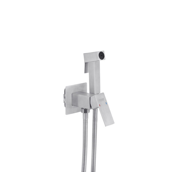 Гигиенический душ Kroner KRP Edelstahl Kubus-ESG053 отличный вариант для реализации функции биде даже в небольшом санузле. Корпус изготовлен из пищевой нержавеющей стали SUS 304, что обеспечивает долговечность и безопастность в эксплуатации изделия. Смеситель оснащен керамическим картриджем диаметром 25 мм, обеспечивающим плавное регулирование температуры и напора при помощи рычага. В комплекте ручная лейка с нажимной клавишей, а также все необходимое для скрытого монтажа.