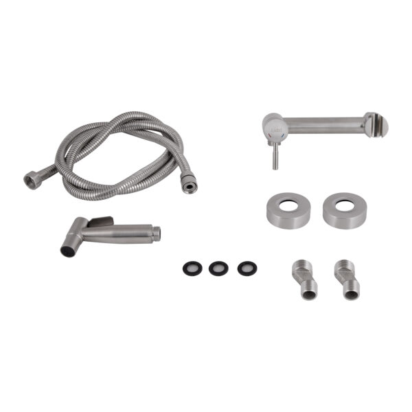 Комплектация | Смеситель, гибкая подводка, лейка для биде, душевой шланг. |