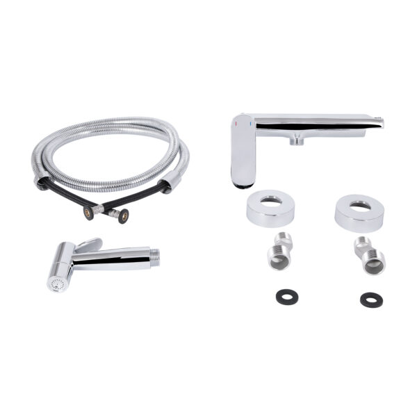 Комплектация | Смеситель, лейка для гигиенического душа, шланг, крепежи. |
