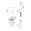 Модель разработана для скрытого монтажа: все технические элементы надежно спрятаны в стене, благодаря чему устройство выглядит максимально лаконично и эстетично. На виду остаются только аккуратный рычаг регулировки температуры, эргономичная душевая лейка с нажимным механизмом и компактный держатель.