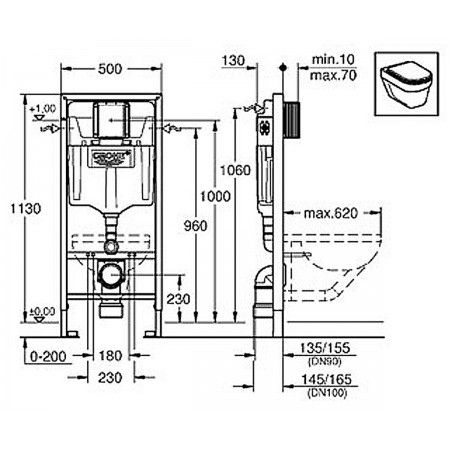 • для подвесных унитазов с опорной поверхностью менее 205 мм требуется длополнительный аксессуар 38 779 000