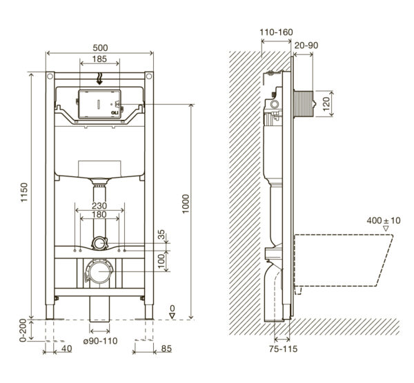 - Совместим с моделями подвесных унитазов с расстоянием между креплениями 180мм
