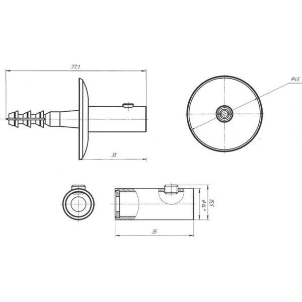 Крепление к полотенцесушителю Laris имеет длину 35 мм и включает в себя четыре крепления, два декоративных колпачка и один шестигранный ключ.